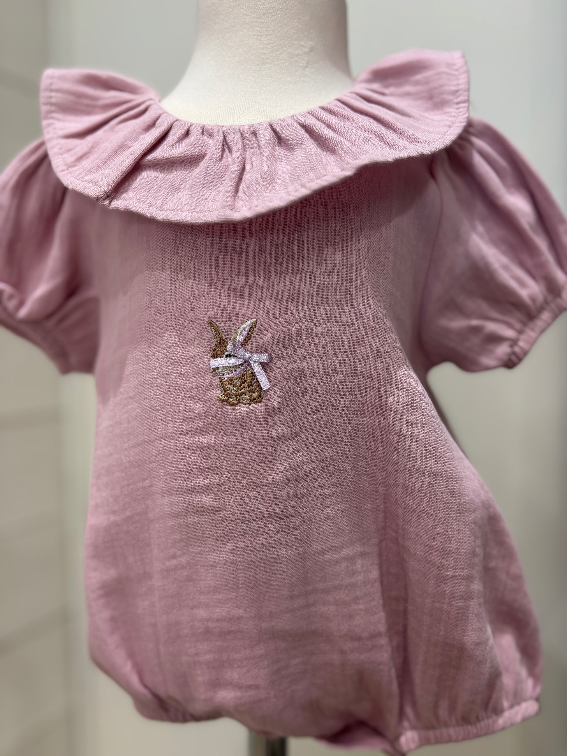Un concentré de tendresse et d’élégance ! Cette barboteuse vieux rose violine est sublimée par un adorable col Claudine et un petit lapin brodé sur l’avant. Confortable et pratique, elle offre une grande liberté de mouvement tout en gardant un style raffiné. Idéale pour le quotidien comme pour les moments spéciaux.
