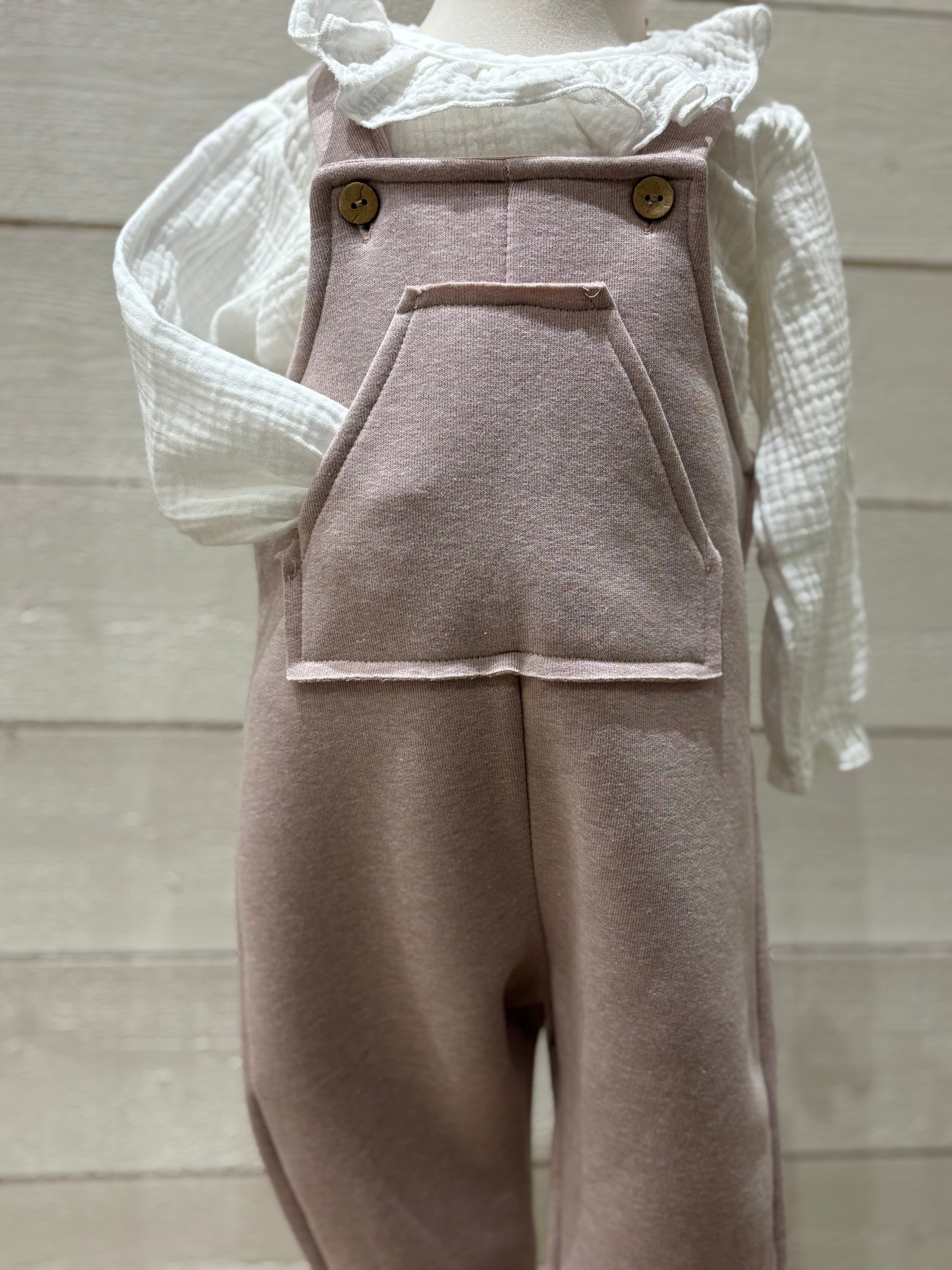 Adorable salopette en coton vieux rose pour petite fille, douce et confortable. Facile à porter au quotidien, elle apporte une touche de couleur tendre et raffinée au dressing des petites filles, idéale pour créer des tenues mignonnes et pratiques.